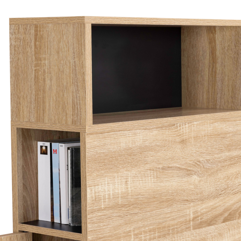 Un design sobre et moderne qui s'intégreraparfaitement à votre espace de nuit. Optimisezvotre espace grâce aux niches frontales et latéralesde cette tête de lit, qui vous permettront de rangervos affaires tout en les gardant à portée de main !