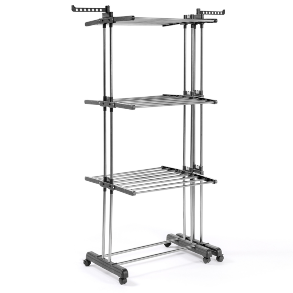 Séchoir pliable en plastique blanc pour la maison. Avec ses 23 mètres d’étendage, ce séchoir sur pied peut accueillir tout votre linge sortant de la machine à laver. Stable et robuste, il est idéal pour étendre les draps. Son rangement est rapide et simple, l’étendoir se plie en un rien de temps sans risque d’y laisser un doigt !